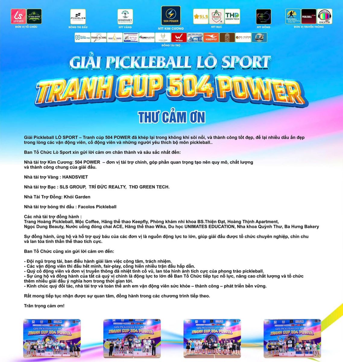 [Đồng hành PickleBall LÒ SPORT 04.01.2026] Giải Pickleball Lò Sport - Tranh Cúp 504 POWER